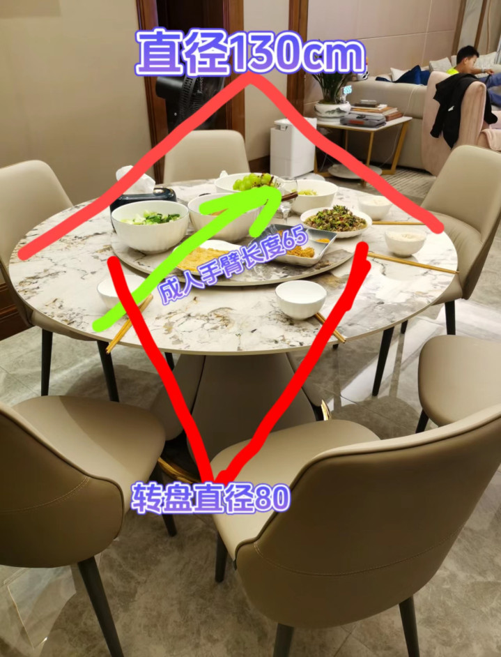 另一方面,长度超过1.5米的长方形餐桌,在日常生活使用中或许会引发诸多不便。在人多聚餐的场景下,坐在餐桌两端的人,夹菜会变得极为困难。
